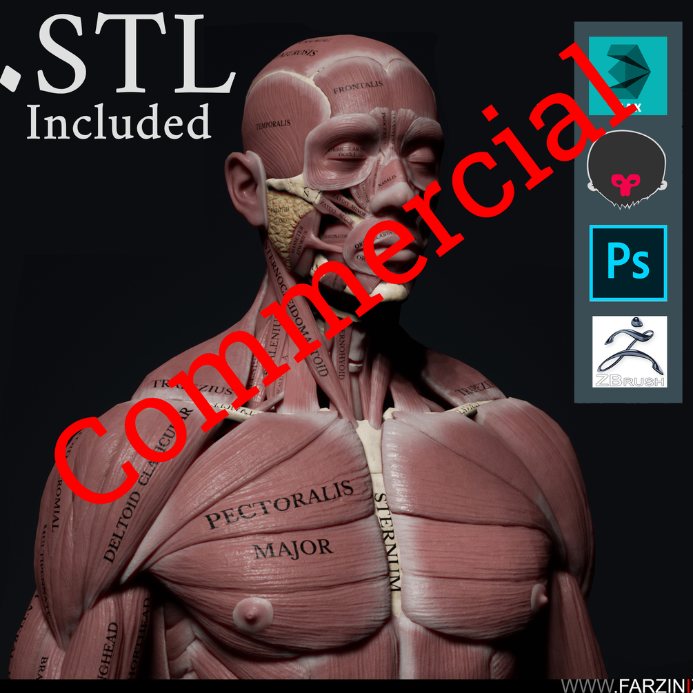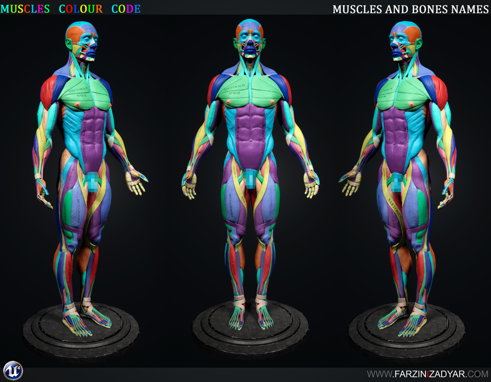 3D Digital human anatomy model is a great learning companion with all the muscles and bones named. There is also a Colour-code included in this package as well as muscle striation.