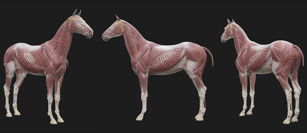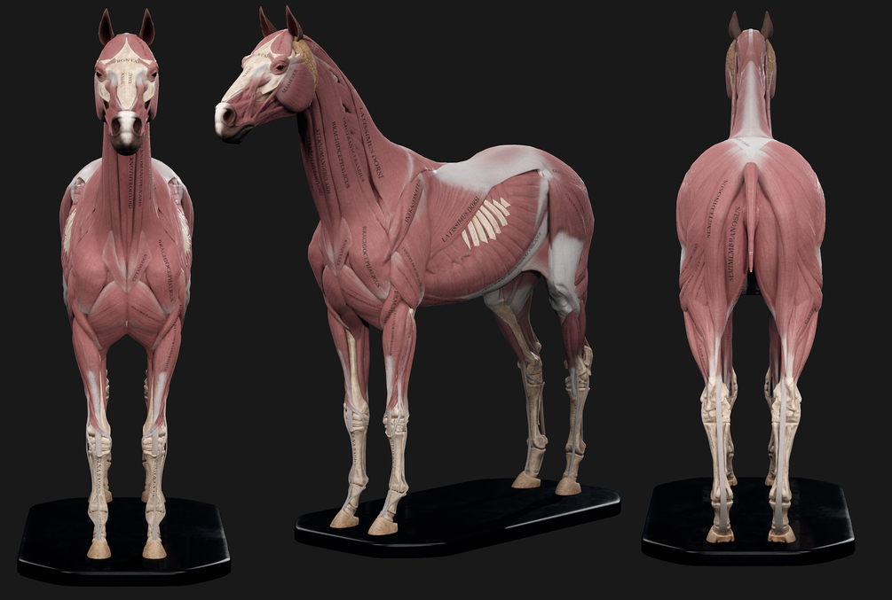 3D Horse Anatomy Kit represents accurate landmarks of real-life horse with all muscles and bones labled.